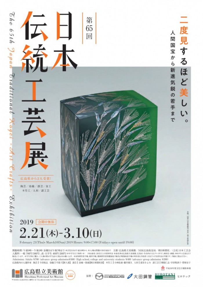 2019.2.25(mon) 第65回 日本伝統工芸展 広島展 ただいま広島県立美術館にて 第65回 日本伝統工芸展 が開催中です 3月10日(日)まで。 3月9日(土)15:00~ 私が金工部門の列品解説をい […] news