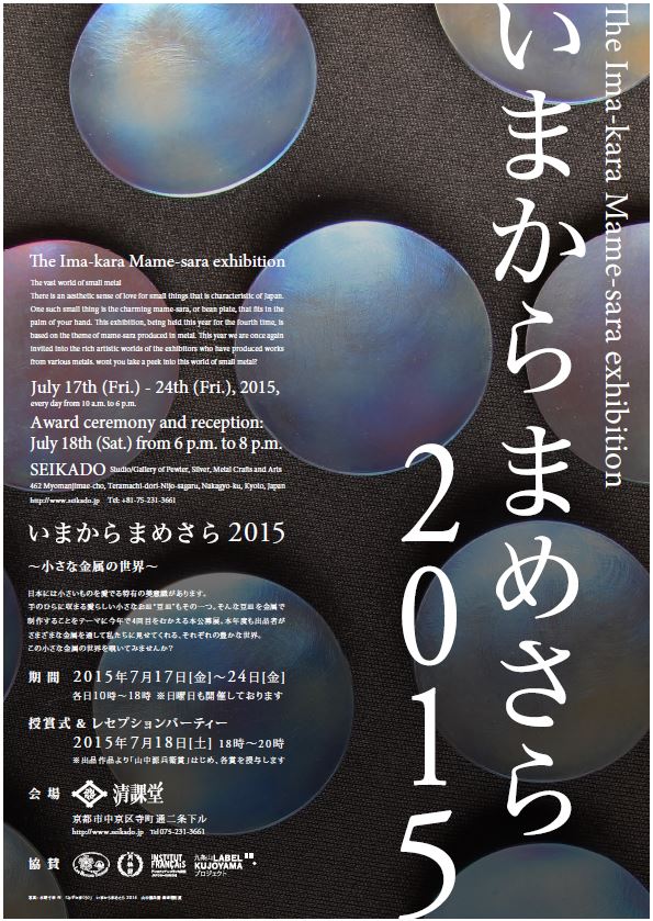 2015.7.9(thu) いまからまめさら 展 京都の清課堂にて 「いまからまめさら 2015」 が開催されます 金属の豆皿だけという非常にめずらしい公募展。 日本全国から69名の作家の作品が集 […] news
