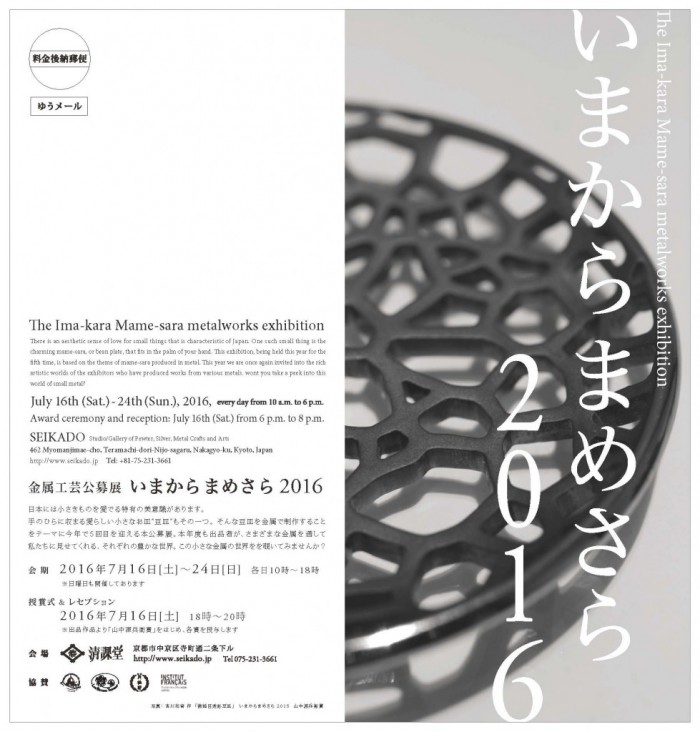 2016.7.12(tue) いまからまめさら 2016 昨年に続き 今年も京都清課堂さんでの 「いまからまめさら 2016」 に参加いたします 金属の豆皿だけという たいへん珍しい展覧会です 5回目となる今年は全国か […] news